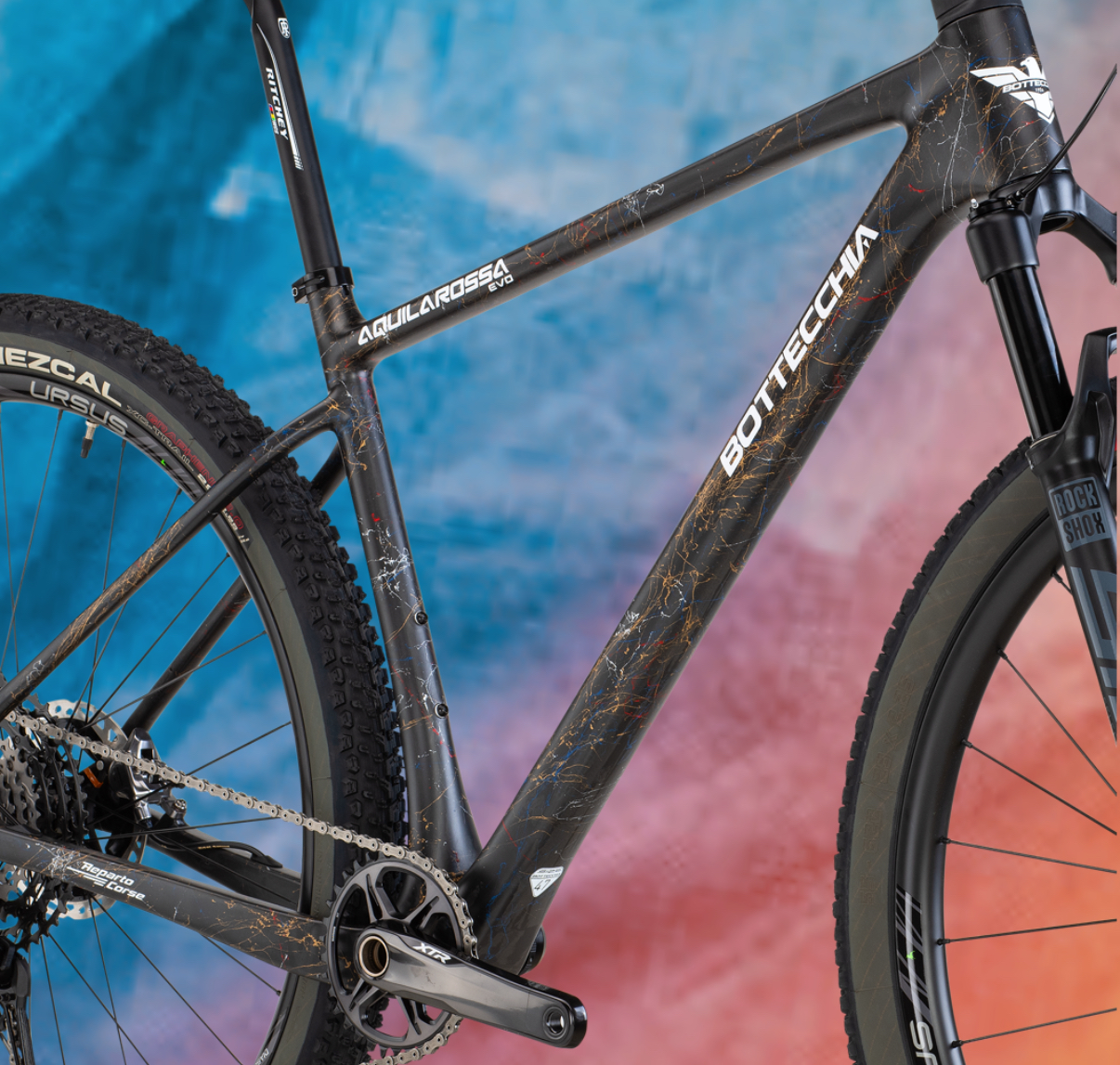 Nuovo design grafico per AQUILA ROSSA EVO, la hard tail da competizione, progettata per gli atleti del mondo Mountainbike. Bici ufficiale del Bottecchia Factory Team, permette di affrontare le salite più insidiose con efficienza, e di conquistare le discese veloci in totale sicurezza.